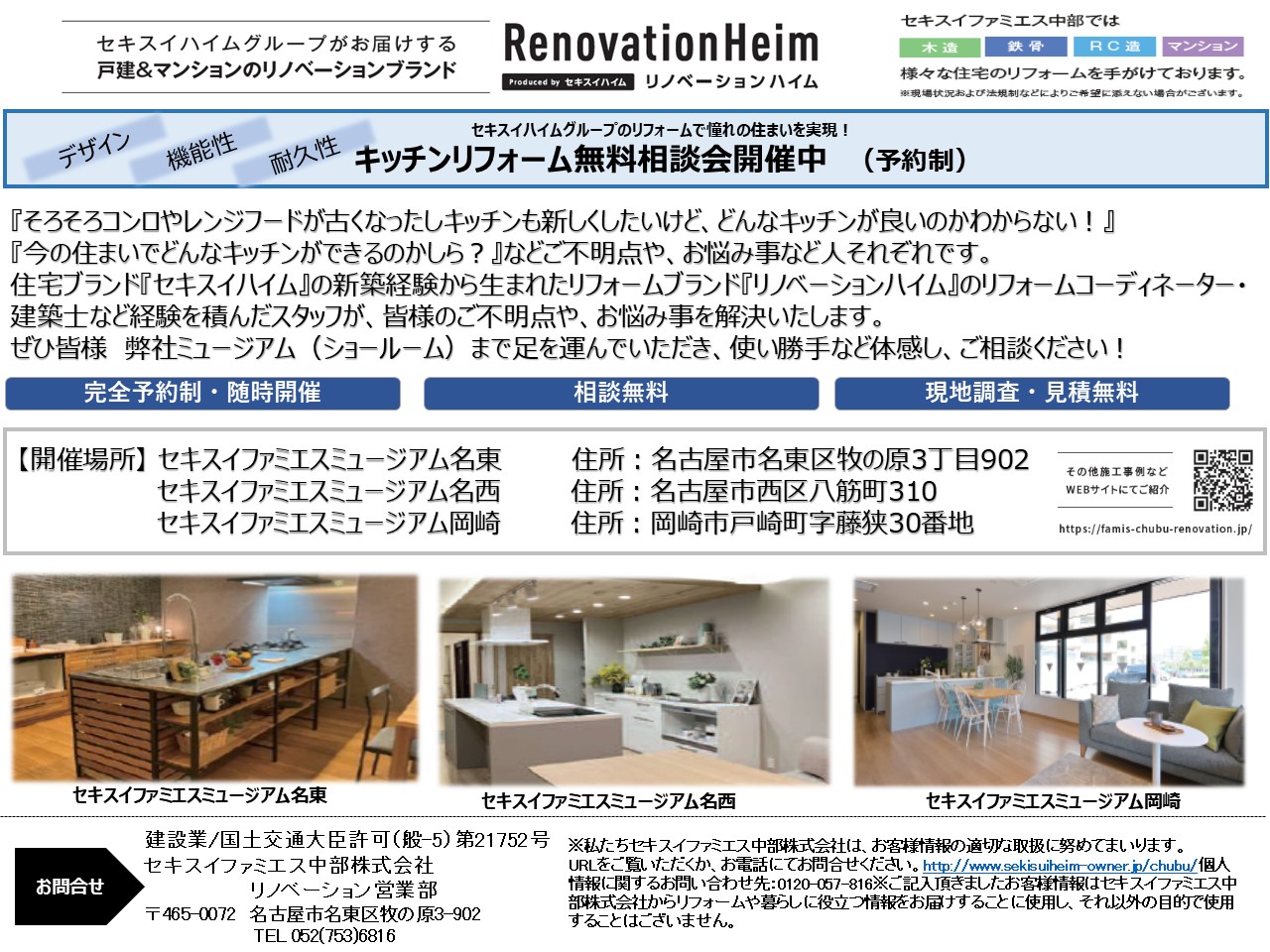 セキスイファミエスミュージアム名東 セキスイファミエスミュージアム名西 セキスイファミエスミュージアム岡崎