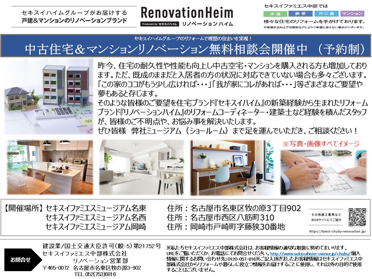 中古住宅&マンションリノベーション無料相談会開催中   (予約制)