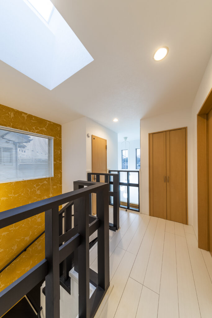 2階ホールの天窓が階段・玄関吹き抜けから1階に明るさをもたらしています。
