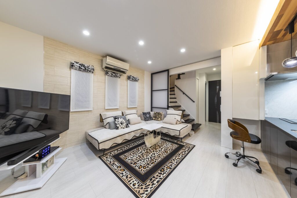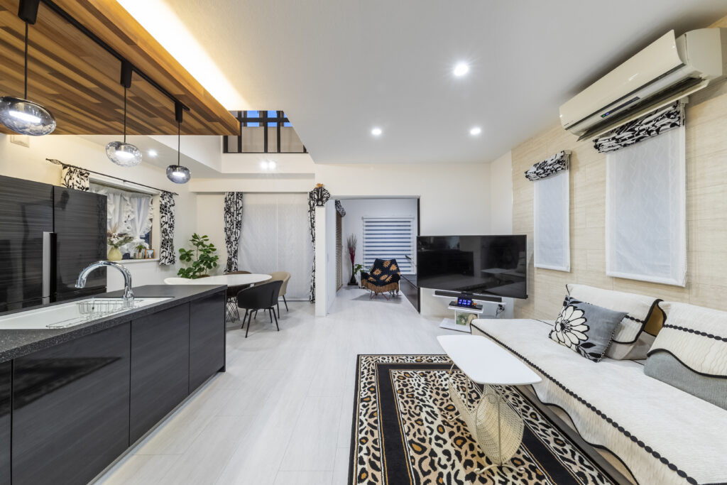 間仕切りのないキッチン・ダイニング・リビングの空間です。